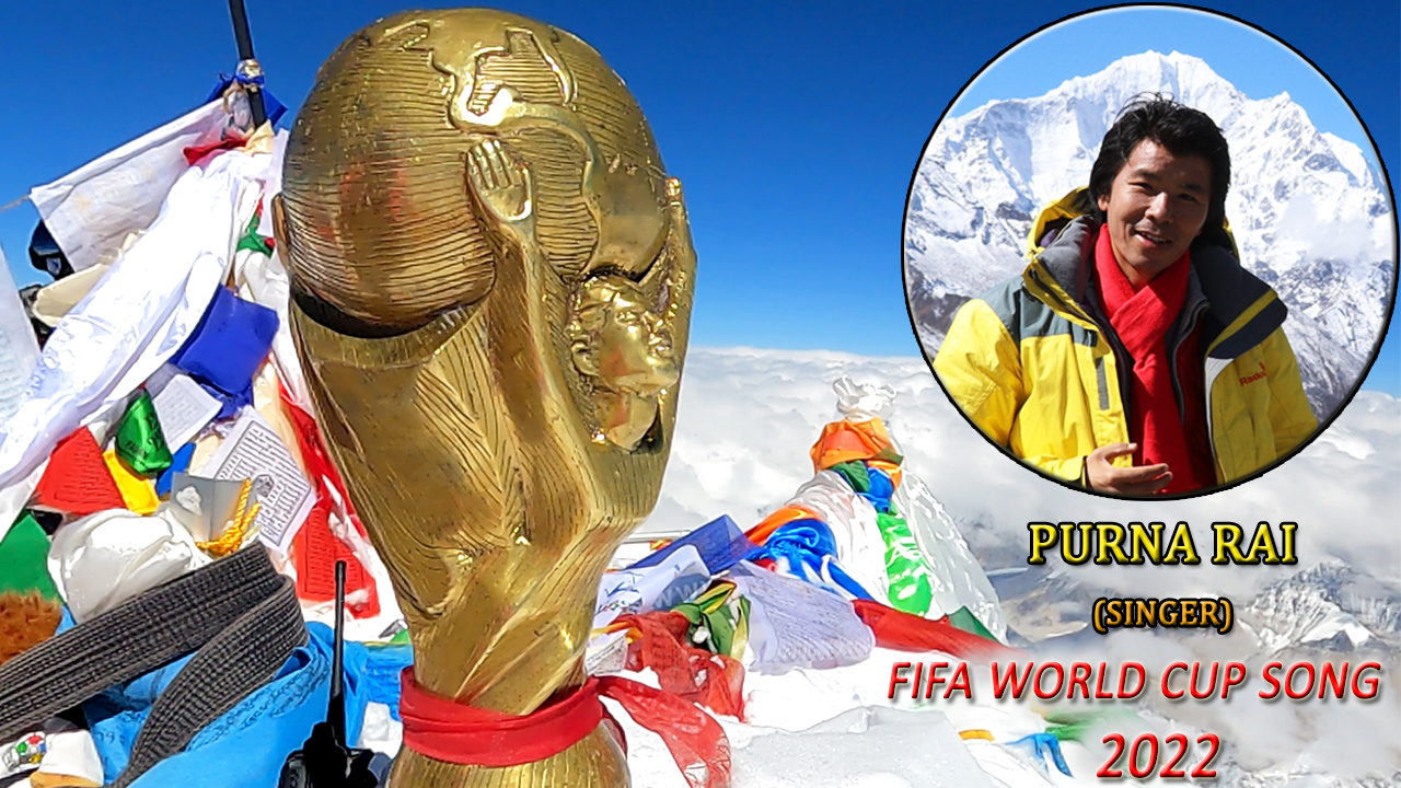 The song sung by famous singer Purna Rai has been made public for the first time in the history of the highest peak, Mount Everest top. This is the first time that a song on climate change, world peace, and FIFA World Cup has been composed in Nepal. Named the Seven Summits for the FIFA World Cup campaign, the campaign team aims to take the title track, including the FIFA World Cup trophy (Replica), to the highest mountains on seven continents.